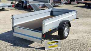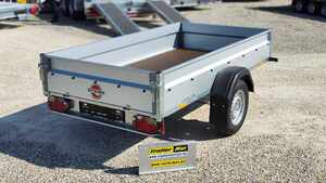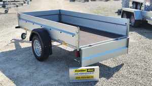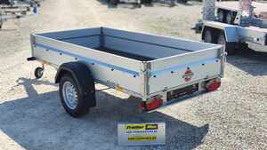 TrailerMax Utánfutócentrum M5 INÁRCS. Több mint 600 darab utánfutó-pótkocsi-trailer állandó készleten. STEMA STL 13-25-13.1 típusú 1 tengelyes ráfutófékes áruszállító kivitel. A plató hasznos belső mérete 251x128cm, 1300kg össztömeg, erős horganyzott alváz, rétegelt lemez fa padozat, 35cm magas horganyzott acéllemez oldalfalak, hátfal nyitható és levehető, első fal leszerelhető. A támkerék, 1 pár kerékék és a lengéscsillapító szett tartozéka. Minőségi Német pótkocsi. A nálunk vásárolt pótkocsikat igény esetén forgalomba helyezzük, ami lebonyolítható interneten keresztül otthonról is, elegendő csak az átvételkor eljönni telephelyünkre. A képek illusztrációs jelleggel készültek. A pontos felszereltségről és kiegészítőkről vásárlás előtt kérjük tájékozódjon elérhetőségeink egyikén, amennyiben az a leírásból nem derül ki egyértelműen.