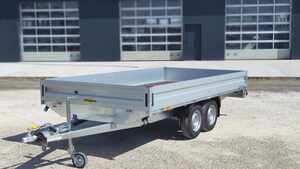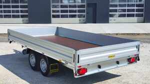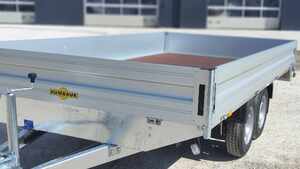 TrailerMax Utánfutócentrum M5 INÁRCS. Több mint 600 darab utánfutó-pótkocsi-trailer állandó készleten. Humbaur HT 354121 típusú 2 tengelyes ráfutófékes áruszállító kivitel. A plató hasznos belső mérete 410x210cm, 3500kg össztömeg, masszív tüzihorganyzott acél alváz, rétegelt lemez fa padozat, 35cm magas duplafalú eloxált alumínium oldalfalak, minden oldalon nyitható és levehető, sarokvas kivehető, első osztályú Német minőségi pótkocsi. A nálunk vásárolt pótkocsikat igény esetén forgalomba helyezzük, ami lebonyolítható interneten keresztül otthonról is, elegendő csak az átvételkor eljönni telephelyünkre. A képek illusztrációs jelleggel készültek. A pontos felszereltségről és kiegészítőkről vásárlás előtt kérjük tájékozódjon elérhetőségeink egyikén, amennyiben az a leírásból nem derül ki egyértelműen.
