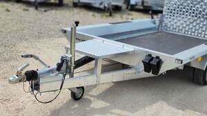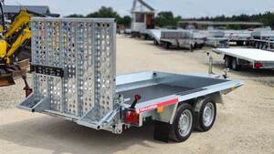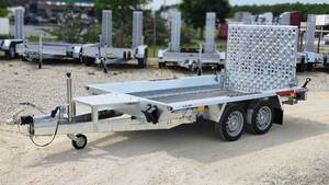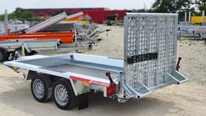 TrailerMax Utánfutócentrum M5 INÁRCS. Több mint 600 darab utánfutó-pótkocsi-trailer állandó készleten. Temared Builder gépszállító utánfutó. 298 x 153cm belső hasznos platóméret, 2700kg össztömeg, teli hátsó rámpa hátfal rugós rásegítéssel, rámpával egybeépített támasztó talppal. Tüzihorganyzott acél alváz és oldalfalak, rétegelt lemez fa padozat, lekötözéshez fülek az oldalak mentén. A nálunk vásárolt pótkocsikat igény esetén forgalomba helyezzük, ami lebonyolítható interneten keresztül otthonról is, elegendő csak az átvételkor eljönni telephelyünkre. A képek illusztrációs jelleggel készültek. A pontos felszereltségről és kiegészítőkről vásárlás előtt kérjük tájékozódjon elérhetőségeink egyikén, amennyiben az a leírásból nem derül ki egyértelműen.