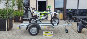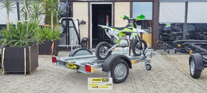 TrailerMax Utánfutócentrum M5 INÁRCS. Több mint 600 darab utánfutó-pótkocsi-trailer állandó készleten. Újra készletről elérhető a régi kedvenc, Neptun Moto 2 motoros motorszállító, de ezentúl már KNOTT tengellyel szerelve. A kivitel tartozéka a 2db motortartó sín, 2db kerékbefogó ív és 1db rámpa. Ívelt vonórúd az alacsonyabb padlómagasság érdekében, igény esetén a platót egy biztonsági csavar kivétele után le is lehet billenteni. A nálunk vásárolt pótkocsikat igény esetén forgalomba helyezzük, ami lebonyolítható interneten keresztül otthonról is, elegendő csak az átvételkor eljönni telephelyünkre. A képek illusztrációs jelleggel készültek. A pontos felszereltségről és kiegészítőkről vásárlás előtt kérjük tájékozódjon elérhetőségeink egyikén, amennyiben az a leírásból nem derül ki egyértelműen.
