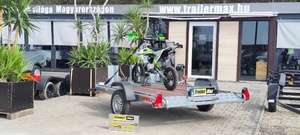 TrailerMax Utánfutócentrum M5 INÁRCS. Több mint 600 darab utánfutó-pótkocsi-trailer állandó készleten. Temared Moto-Quad típusú 3 motor illetve Quadszállító hidraulikusan süllyeszthető utánfutó, bélelt platóval, torziós rugózással. Horganyzott acéllemez alváz és motorszállító kiegészítők. Az ár tartalmazza a 3db kerékbefogót. Körben lekötözéshez fülek. A nálunk vásárolt pótkocsikat igény esetén forgalomba helyezzük, ami lebonyolítható interneten keresztül otthonról is, elegendő csak az átvételkor eljönni telephelyünkre. A képek illusztrációs jelleggel készültek. A pontos felszereltségről és kiegészítőkről vásárlás előtt kérjük tájékozódjon elérhetőségeink egyikén, amennyiben az a leírásból nem derül ki egyértelműen. Támkerék nincs benne az árban.